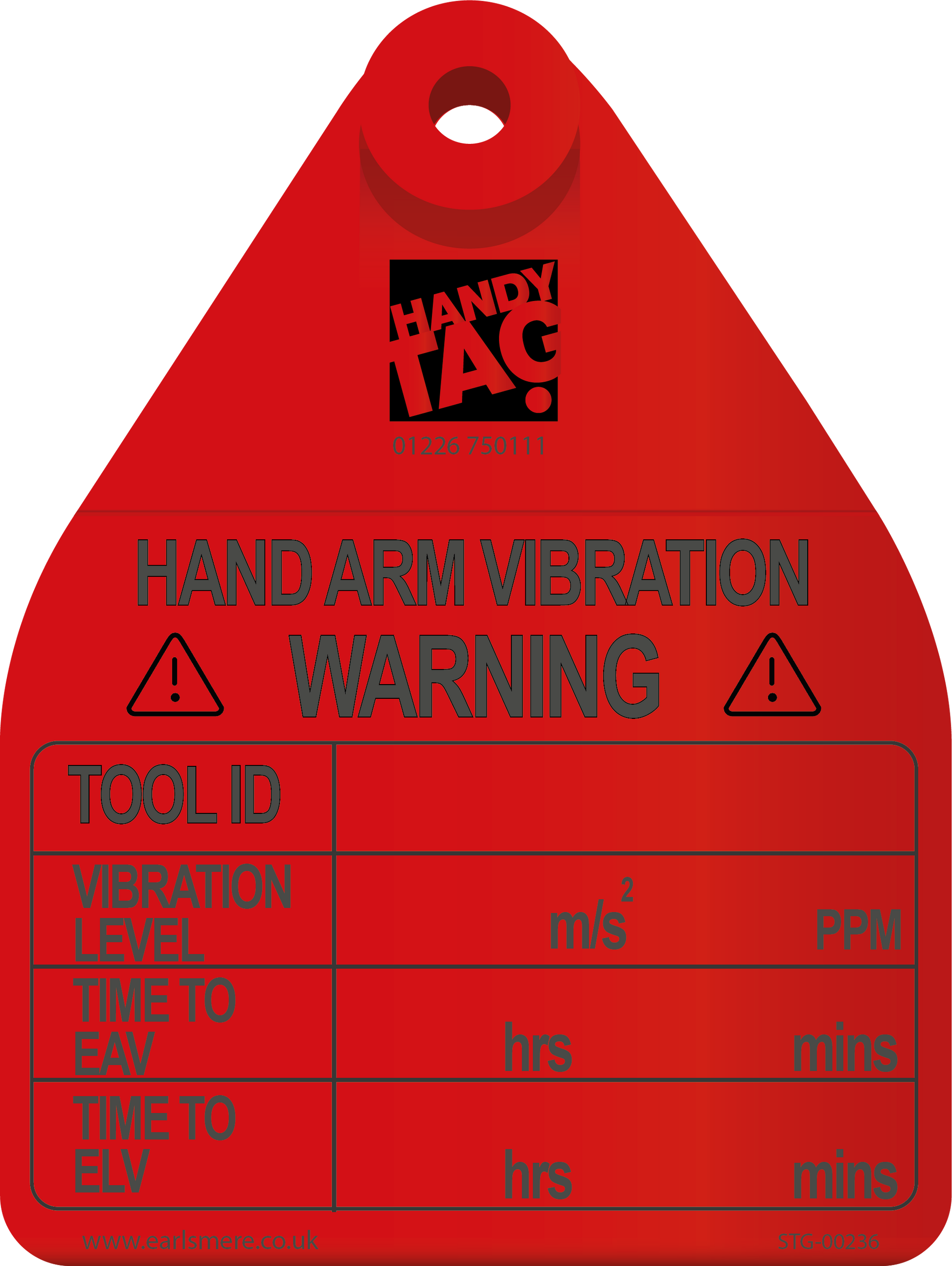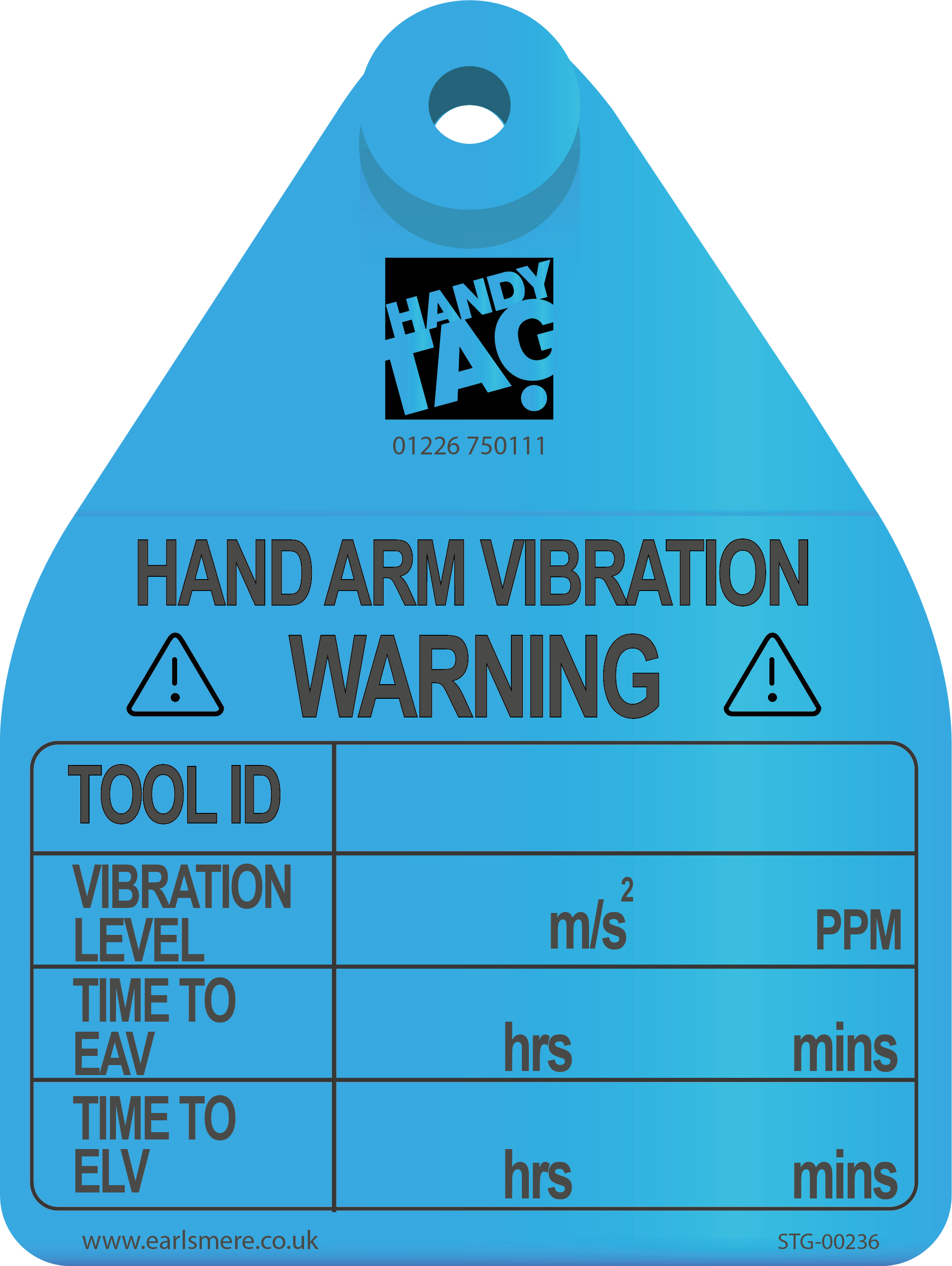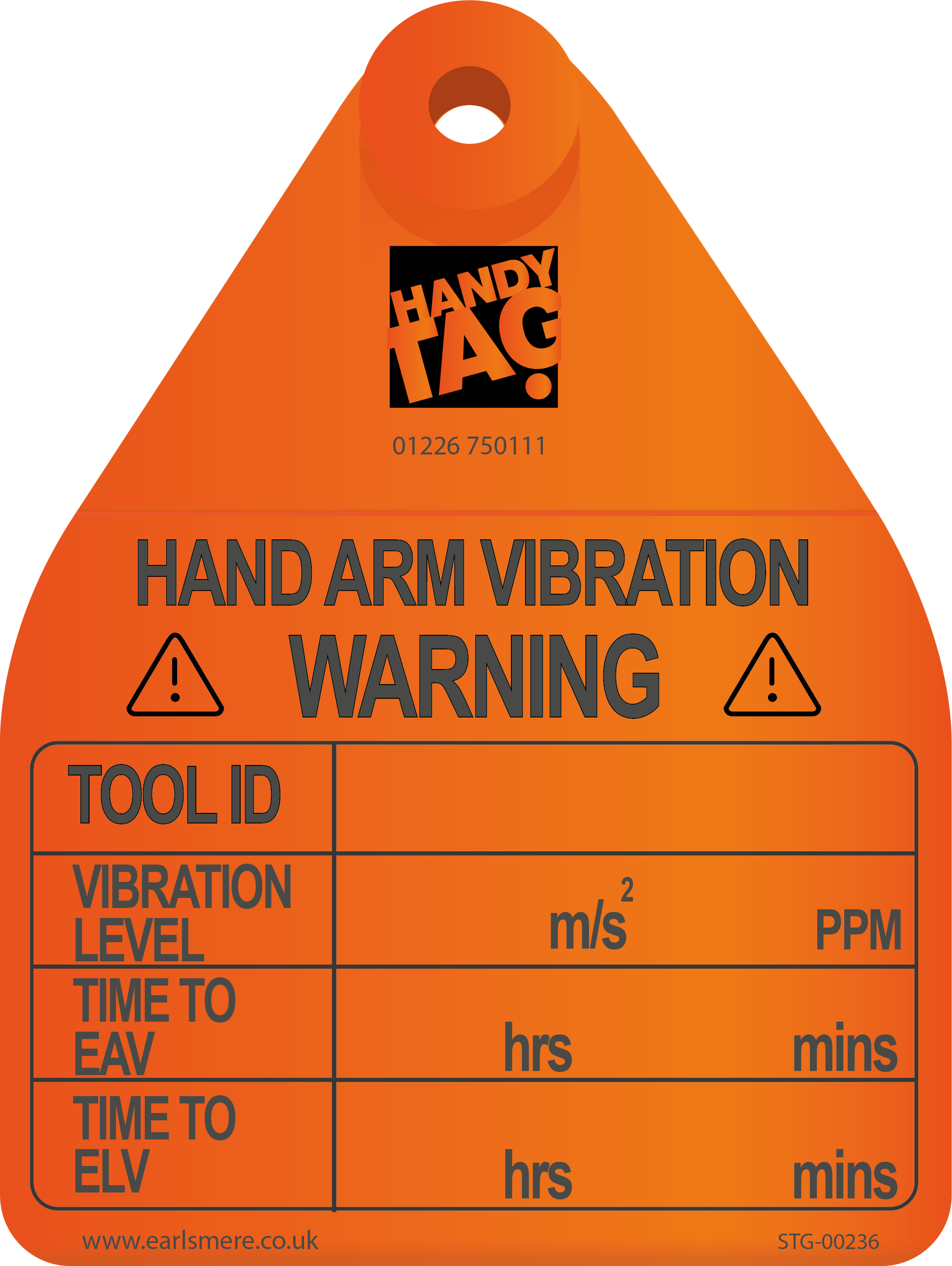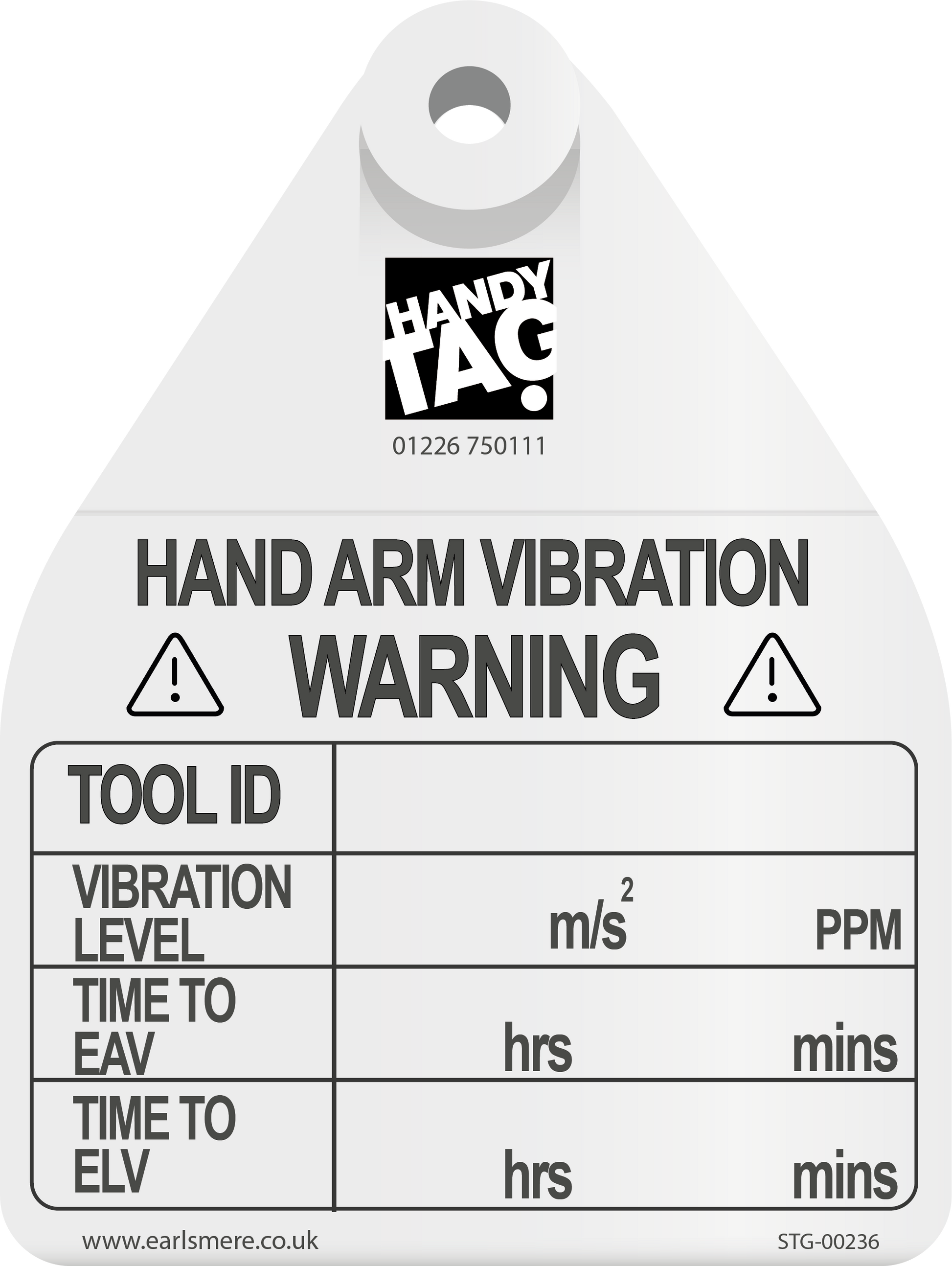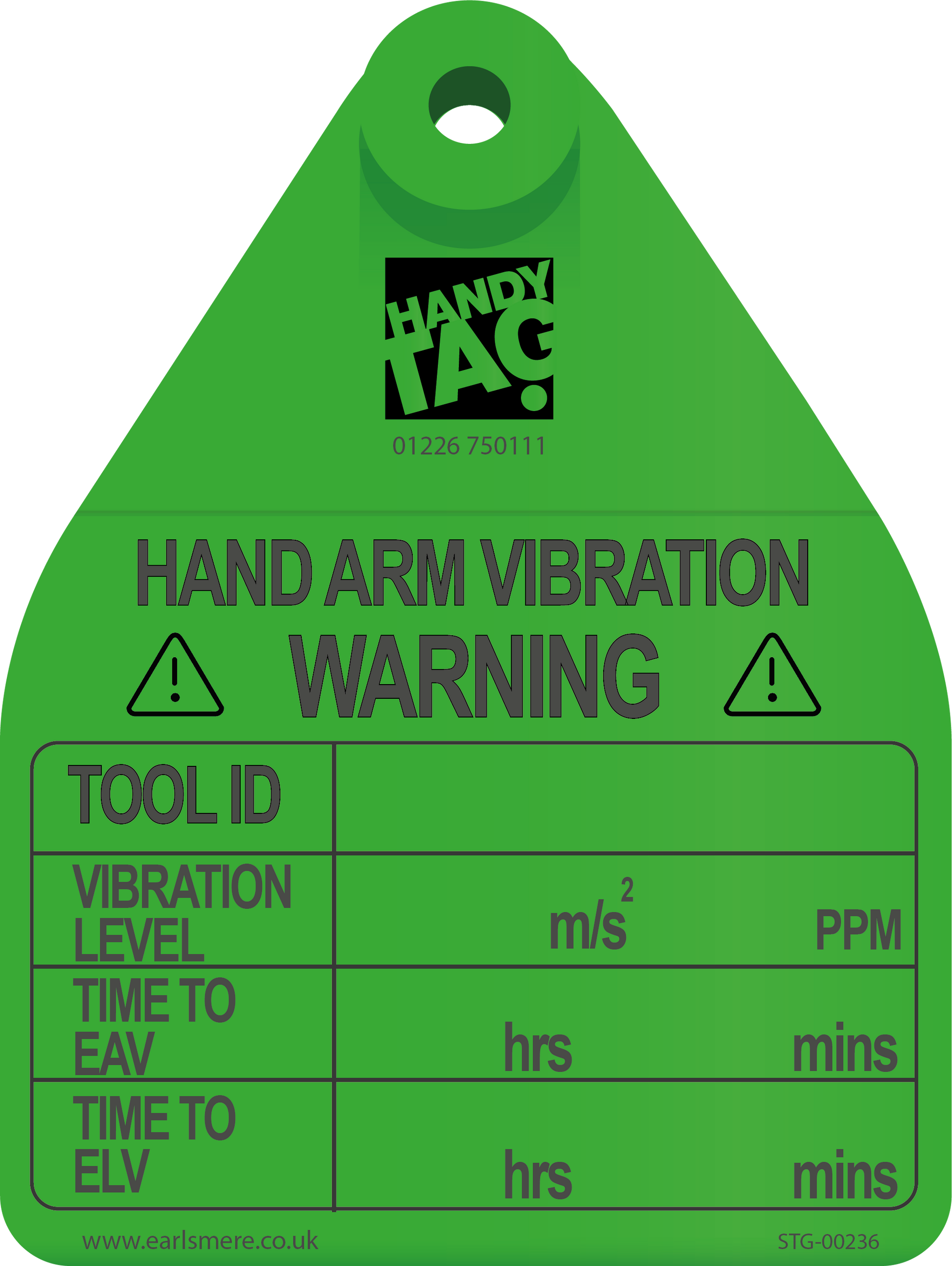 You can hand write the following Hand Arm Vibration data on the tag